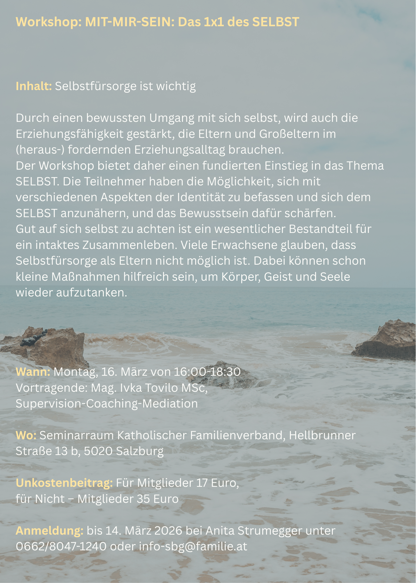 Adresse Katholischer Familienverband Salzburg und Tiroler Unterland Hellbrunner Straße 13b 5020 Salzburg Tel.: 0662 / 8047 - 1240E-Mail schreiben Bürozeiten: Montag - Donnerstag, 8:30 - 11:30 Uhr Hier geht´s zum Omadienst: Spendenkonto: IBAN: AT27 2040 4000 0315 5272 BIC: SBGSAT2SXXX